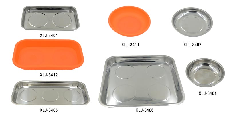 Magnetic trays in different size and material, contain strong permanent magnet. Can hold nuts, screws, small metal parts and tools. Great for jobsite, garage, office and home.